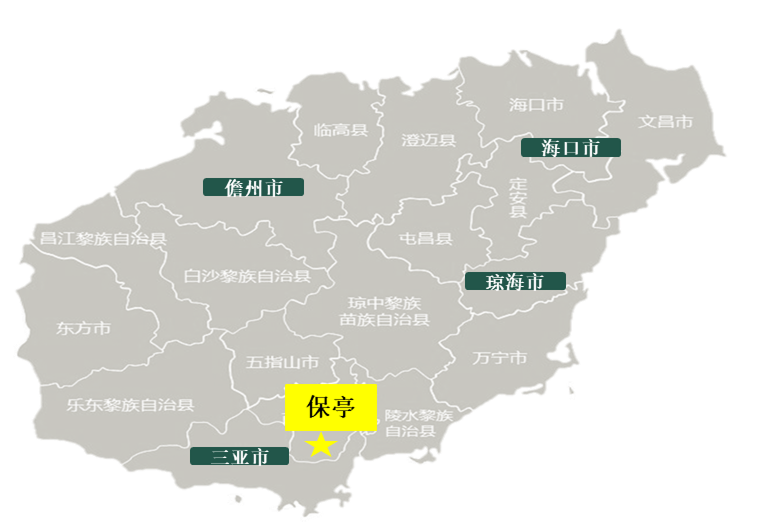 保亭县位于海南省东南部,地处北纬18°全球黄金度假带,是全球唯二同时拥有热带雨林及天然温泉的地区。保亭县自然资源得天独厚,拥有年均气温22.4℃的恒温气候、84.87%的森林覆盖率、8200个/cm³医疗级负氧离子浓度、富含微量元素的天然温泉以及200余种黎苗特色药用植物。
